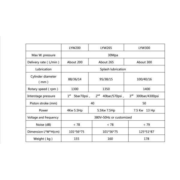 LYX high pressure air compressor is 3-stage compression and air cooled compressor. It compresses free air to max pressure 30Mpa and cleans out oil, vapor and impurity by activated carbon and 13X molecular sieves. The outlet air accords to GB18435-2001 diving breathing air standard. It is a reliable machine to provide breathing air and other high pressure air application. It is widely used for breathing in firefighting, diving, and testing in air-tight industry.